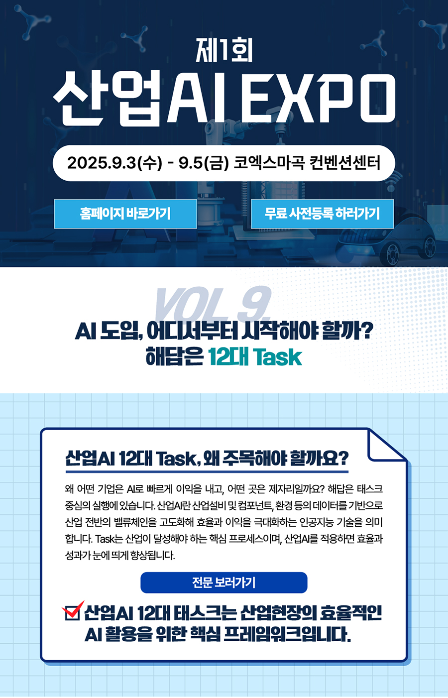 [산업AI 뉴스레터] Vol 9. “AI 도입, 어디서부터 시작해야 할까? 해답은 12대 Task💡