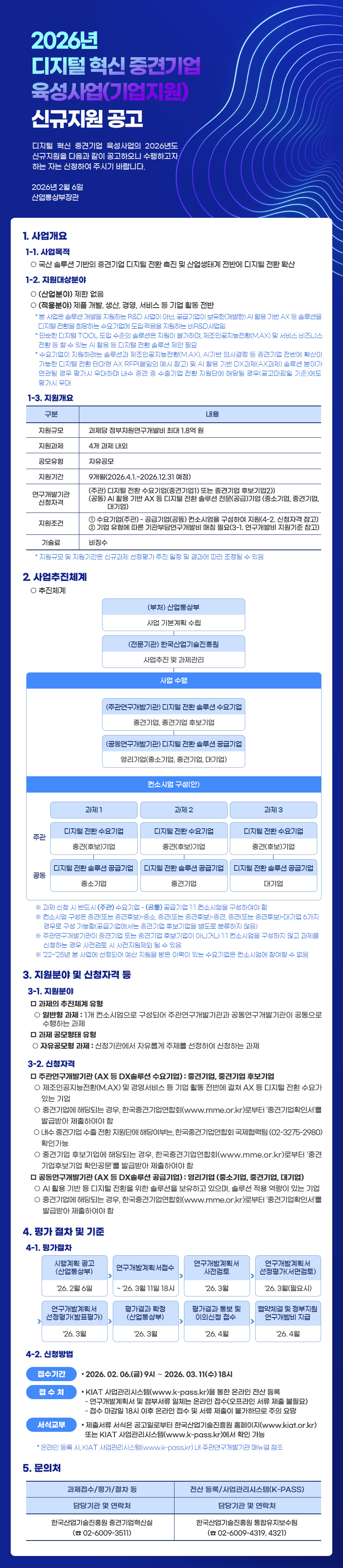 - 공고명: 2026년 디지털 혁신 중견기업 육성사업(기업지원) 신규지원 공고