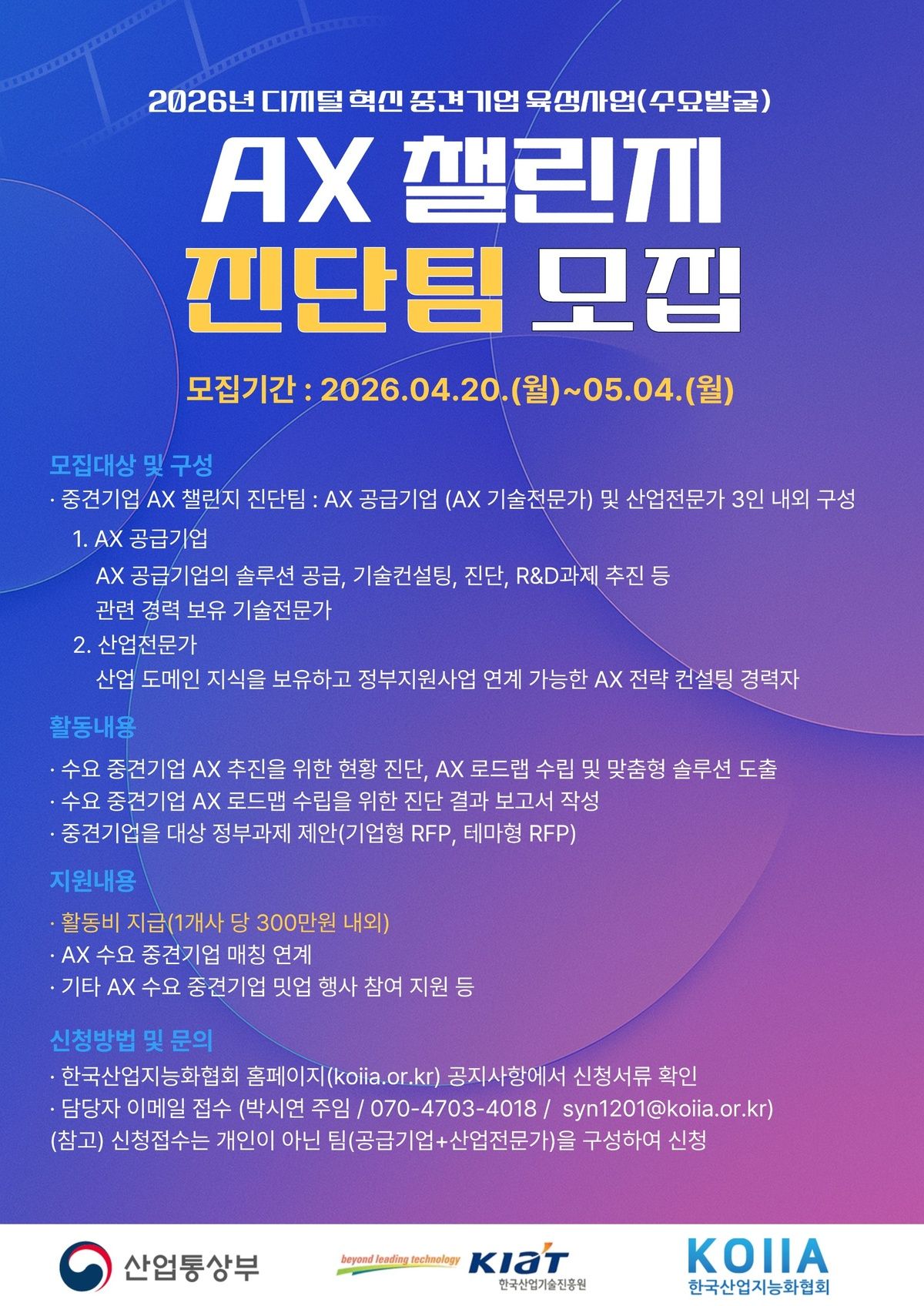 모집대상: AX 챌린지 진단팀 [AX 공급기업(AX기술전문가)과 산업전문가 3인 내외]