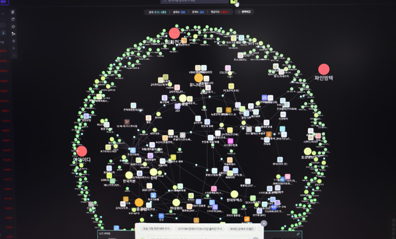 솔루션은 내·외부 데이터와 고객사 맞춤 데이터를 결합하고, AI를 통해 그래픽으로 제작한다. 기업 간 관계성, 기업별 보유 특허·기술 기반 논문 등 산업 인사이트를 쉽게 확인 가능하다.