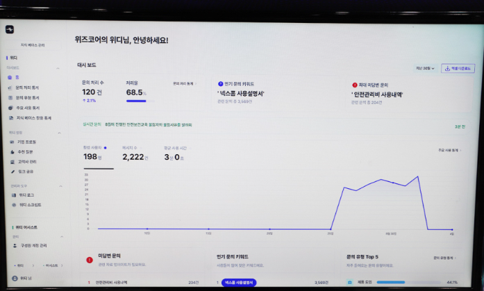 생성형 AI의 고질병인 환각 현상을 어떻게 해결했는지 묻자, “위디의 LLM은 시스템 데이터와 고객이 직접 업로드한 데이터를 기반으로 하고 있어 환각 현상은 거의 발생하지 않는다”라며 “무리하게 답변하는 대신 ‘미답변 문의’로 처리하는 기능을 추가해, 도입 기업에 더 필요한 데이터가 무엇인지 인사이트를 제공할 수도 있다”라고 밝혔다.