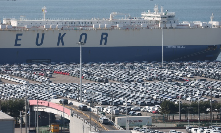 4일 경기 평택시 포승읍 평택항에 수출용 차량이 세워져 있다. 2025.12.4 (ⓒ뉴스1, 무단 전재-재배포 금지)